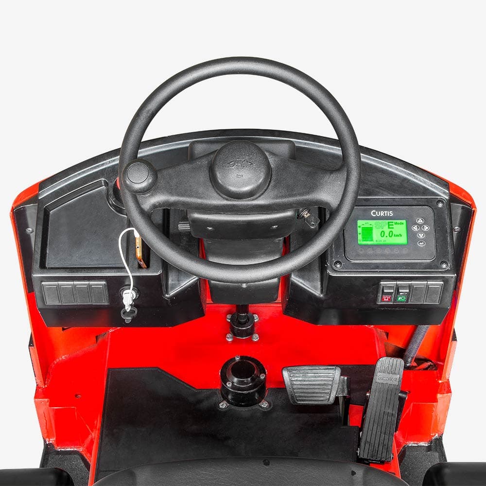 Эргономичная конструкция тягача позволяет повысить производительность, снизив при этом утомляемость оператора даже при частых подъемах и спусках с платформы.